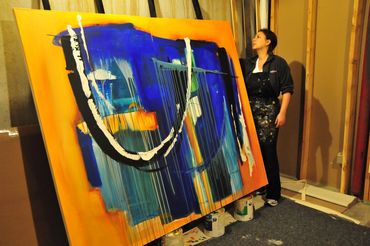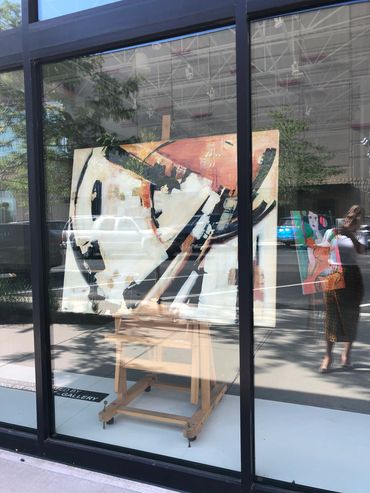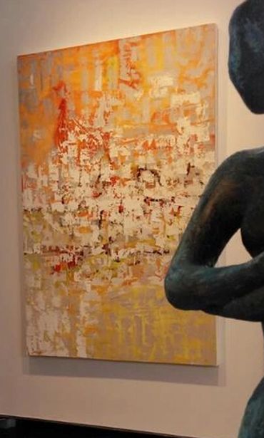 "SUNNY' This highly textured painting is a homage to positivism and beautiful sunny days. 48" x 48" (not framed) Acrylic, Eva Reynolds Fine Art.