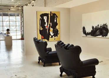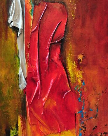"The Ocean Outside" is a collection of highly textured paintings that include paper, gold leaf and several types of fabrics.