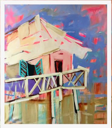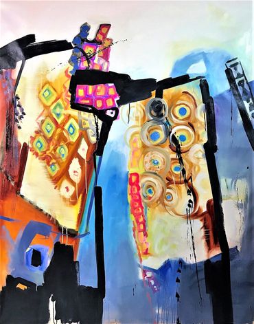 "Teyuna" is inspired by the lost city in the Colombian andes. Oils on Canvas, 72" x 60" Eva Reynolds Fine Art.