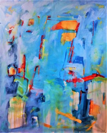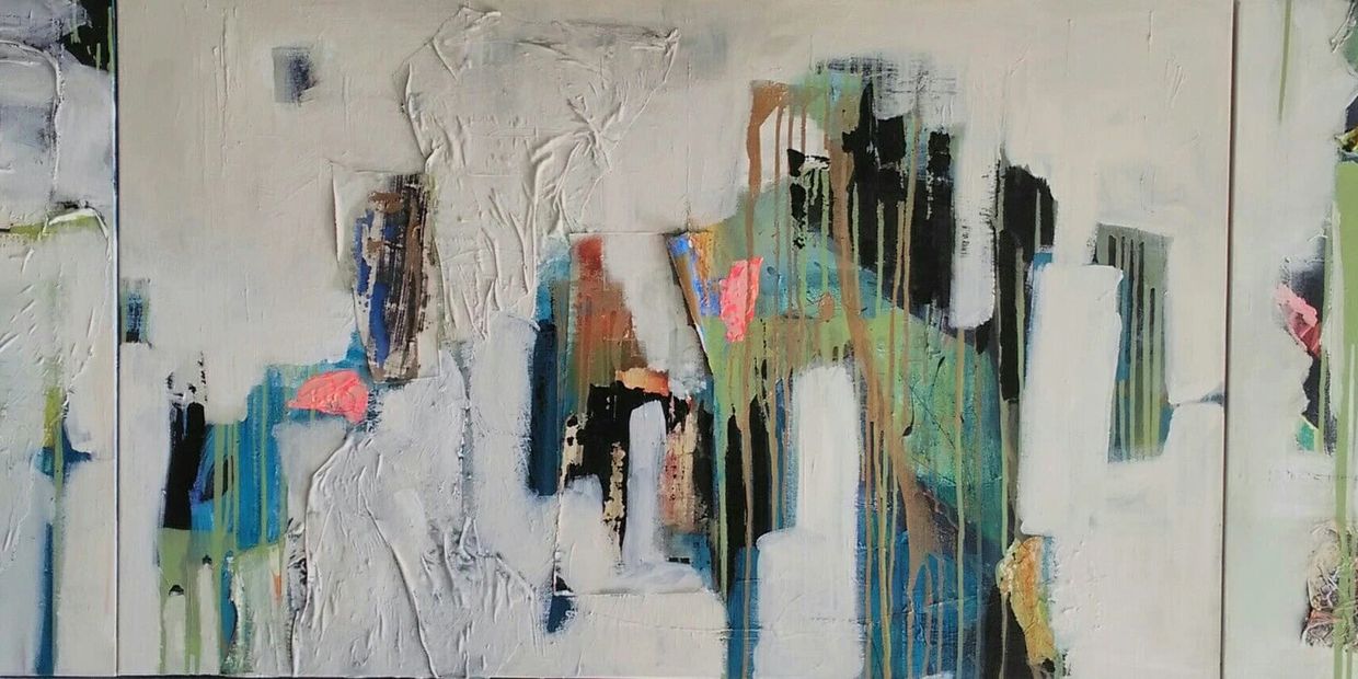 "Skyblue" Mixed media on canvas , shown vertical 30" x 96" x 1 1/2", 2019